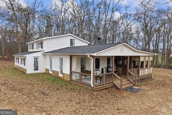 Spacious and private country home offering over 2,400 square feet with four bedrooms and two and a half baths. Conveniently located just minutes from Hartwell and Lake Hartwell. The main level features a large living room with a stone fireplace, a separate dining area, and a kitchen with abundant storage. Three additional bedrooms are located upstairs. Enjoy peaceful outdoor living on the rocking-chair front porch or the back deck with a built-in bar, above-ground pool, and hot tub overlooking a private backyard and creek. Beautiful views of the adjoining pastures provide the perfect setting to watch deer and local wildlife. Invite your friends, there is a 30 amp hookup for an RV.