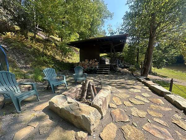 Video Tour: https://youtu.be/e8MiQjUQC6A. YEAR ROUND BOAT LIFE ON THE CLARION RIVER AT ITS FINEST. Yes, the motorboat dock is included! 3+ acres on both sides of the private lane lead to your 3 bedroom 2.5 bath house - do not miss out on this rare chance to acquire a unique site which the current owners upkept for you to enjoy. Switchbacks were cut to enable your rec-vehicles from the house to the riverfront party pavilion, or take the stairs if you prefer. Need storage for your toys? Enjoy an attached oversized 2-car garage on the main level plus a storage garage in the walkout semi-finished basement, an additional detached 1-car garage, and a riverfront storage hut by your flagstone firepit. Two gas fireplaces in-home and a river-view hot tub are the cherries on top. Basement and pavilion furnishings transfer with the sale. Sunsets will be forever changed for the better when you move in. Buyers with bank letter or proof of funds should call today for a private showing. No Drive-Bys.