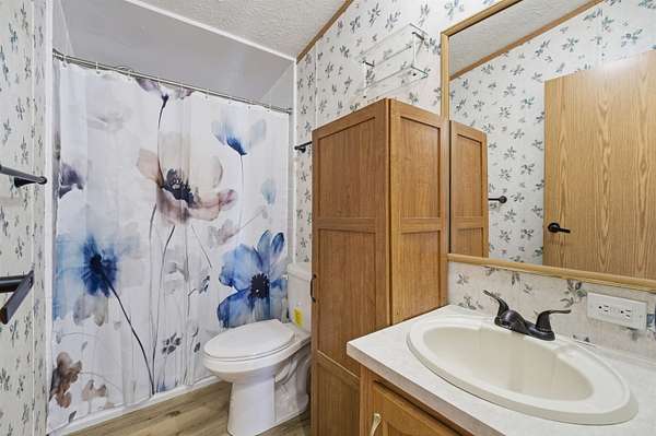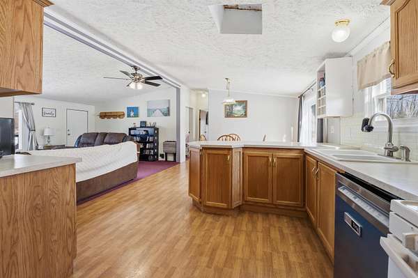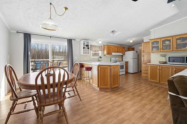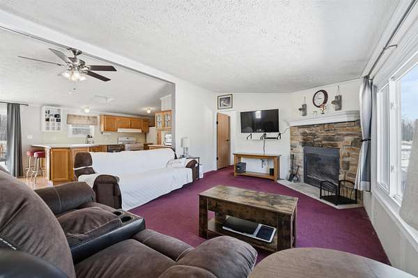 Rare opportunity in Little Suamico! Nestled in the country and surrounded by peaceful woods, this cozy split design 3-bedroom, 2 full bath ranch-style manufactured home sits on 1.5 acres with fence. Enjoy your own private pond complete with aerator, creating a serene setting right in your backyard. Inside, you'll find comfortable living spaces including LR with vaulted ceiling and wood burning fireplace, primary w/ensuite. updates per seller include a newer roof, windows, a/c, furnace and updated bathroom featuring a walk-in shower. The 2.5-car detached garage provides plenty of room for vehicles, storage, or workshop space. 48 hour binding.