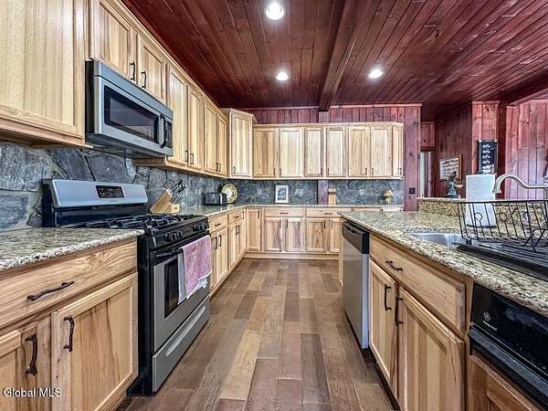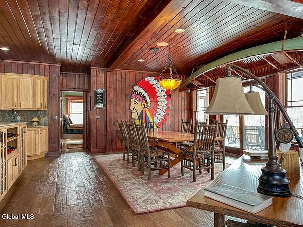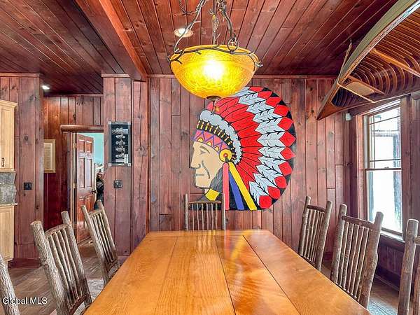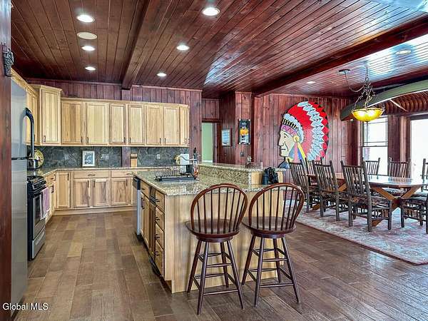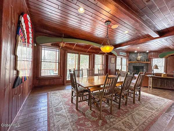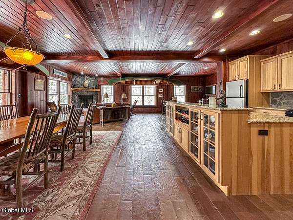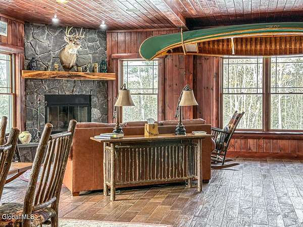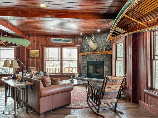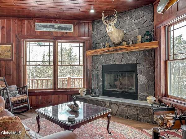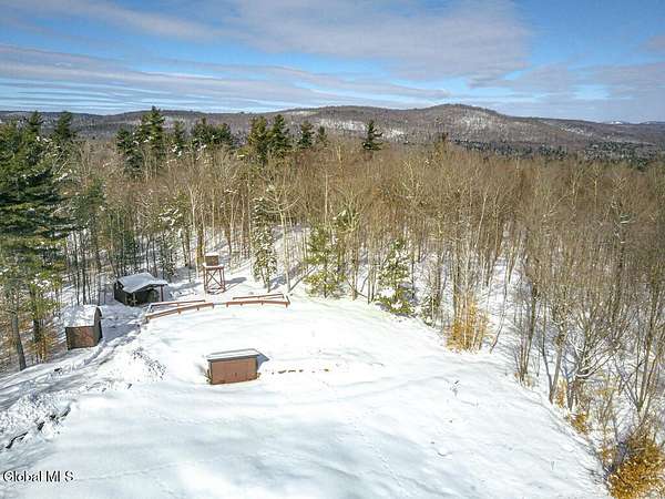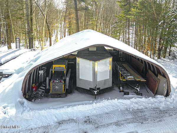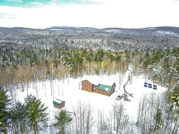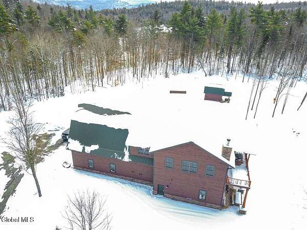 A once-in-a-lifetime opportunity to own 440.29 acres of a completely private paradise surrounded by protected NYS land in Bolton. Only 8 miles to the town of Bolton Landing Your own wilderness retreat with exclusive access to the stunning Indian Pond, renowned for it's exceptional bass fishing or better known as catching, and fresh water swimming. This remarkable property features a 2,040 square foot home perfectly positioned above an expansive 1,500 square foot, 5-car garage with dedicated workshop space and full wood shop. There is also a 1,500 square foot attached multi use garage/workshop area. Inside, you'll find 3 spacious bedrooms, 2 full baths, a large open-concept kitchen with center island, a cozy wood-burning fireplace, convenient laundry with linen closet, and a beautiful porch, ideal for taking in the peaceful surroundings. The massive attic with cathedral ceilings offers an outstanding storage area with further possible living space expansion. Designed for true independence, the property includes 18 fully adjustable pole mounted solar panels, new solar inverter system, lithium-ion battery system, an enclosed/heated building with an 8kw and 30kw totally self-sufficient diesel generators for providing complete non interrupted off-the-grid power. A complete star link internet system that covers many areas of the property. A complete trap shooting range, small clubhouse with fireplace along with a storage shed. Many outbuildings for storage and multi-use operations. With extensive hiking, snowshoeing, cross country skiing, and snowmobile trails right from your doorstep including unfettered access to the Warren County trail system, unmatched privacy, and breathtaking natural beauty in every direction, this is more than a home, it's a legacy property.