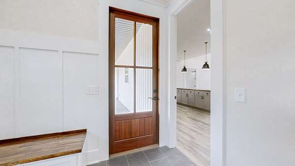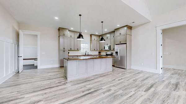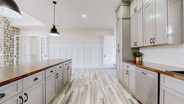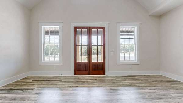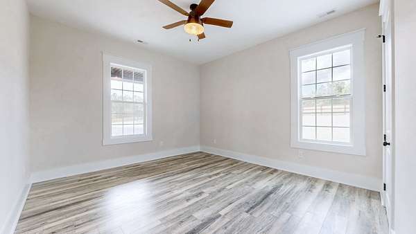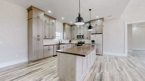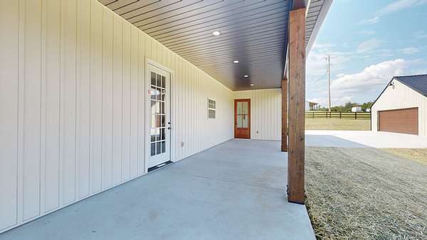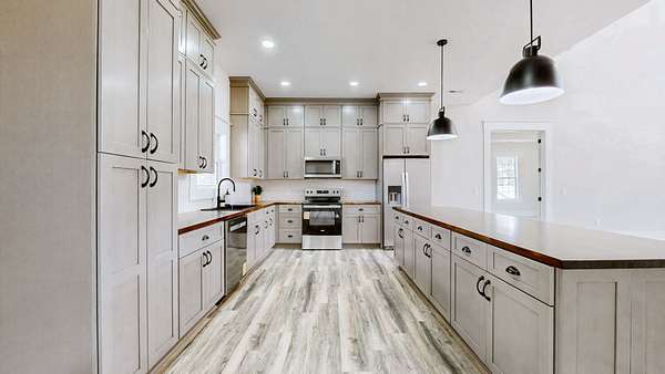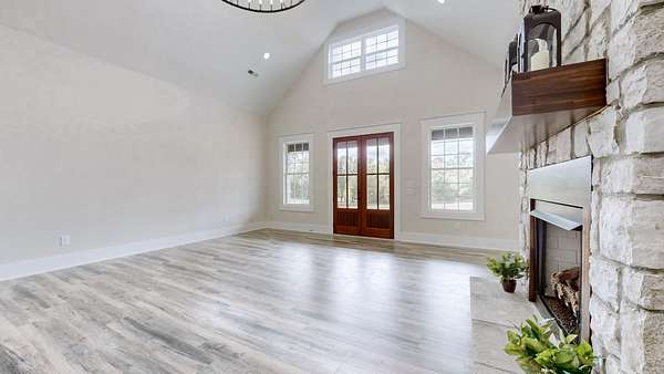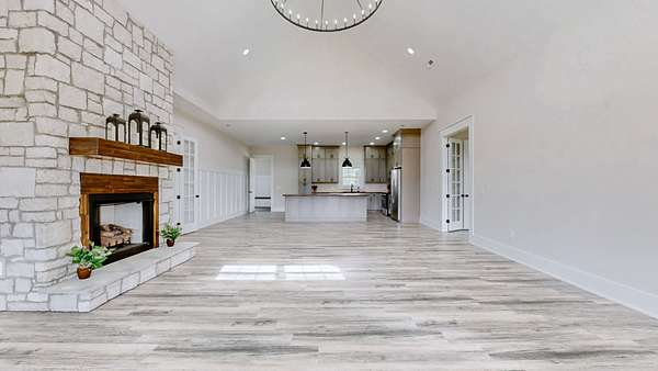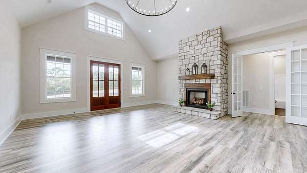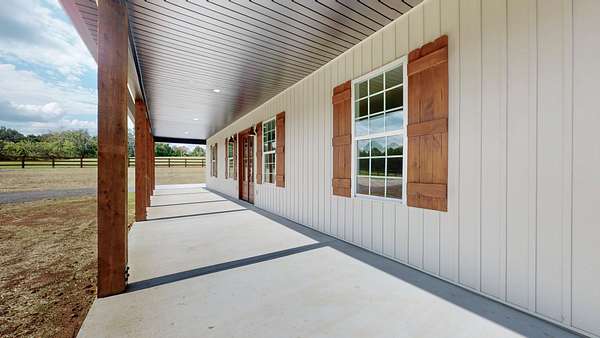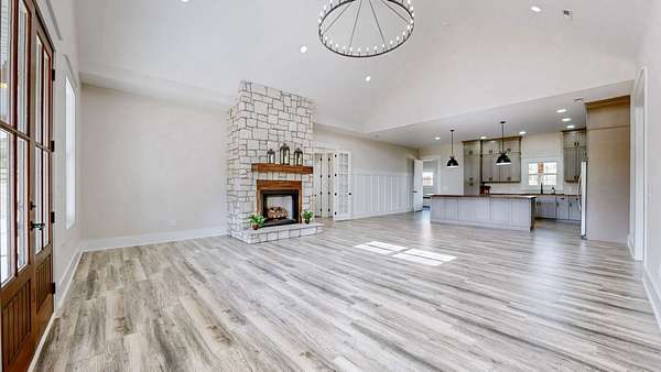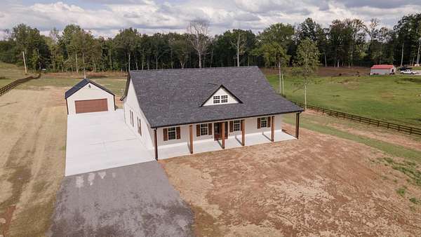 NEW PRICE ! - Situated on approximately 5.4 acres, this gorgeous new home is only a few minutes from the city and features 3 bedrooms and 3 full bathrooms. The open layout of the home lends itself to comfort and convenience, and the vaulted ceiling adds to the spacious feel. The large primary bedroom features a tray ceiling and a beautiful ensuite with two walk-in closets, a double vanity with granite top, a comfortable soaking tub, and a separate tile shower. The kitchen features lots of cabinets with an island, solid butcher block tops, and stainless appliances. The focal point of the living area is the stone fireplace, with gas logs. New LVP and tile flooring extend throughout the house. The second bedroom has a connecting full bath with a tub/shower combination, tile floor, and vanity with granite top. The guest bath is similarly appointed. Outside relaxing comes naturally with a large covered front porch and a generous covered patio at the rear of the home. The separate two car garage has electricity and lights and can be insulated and finished.