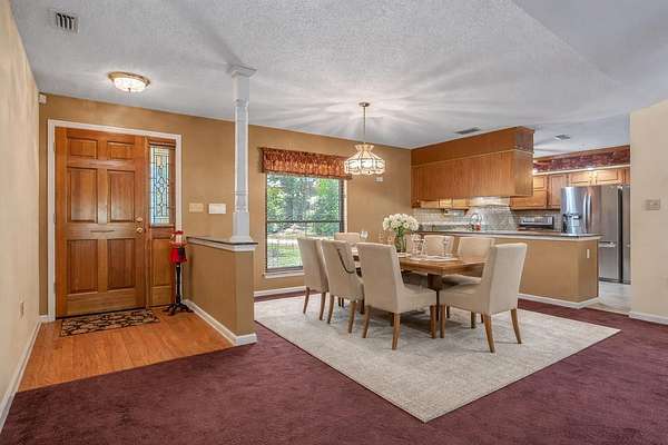 Incredible, custom built, single owner home in the little known yet wonderful Green Oaks Subdivision. Includes an inviting rocking chair front porch, foyer, open and split floor plan, sunroom, generous room sizes, wood burning fireplace, built-ins, central vac, wired for surround sound, mounted 65" TV and much more. Great kitchen with bar, gorgeous granite countertops, all-wood cabinets, stainless appliances, tray ceiling and dual pantries. Generous primary bedroom boasts an en-suite, built-in bookshelves, walk-in closet, jacuzzi tub, separate shower, dual sinks and door leading out to the back patio. Custom touches include a hot water recovery system, insulated interior walls between bedrooms and family room, bonus flex room/office off of garage, large mud/laundry room (incl W/D), individual air returns in the bedrooms along with many other features. This is a very nice, well built, all brick, low maintenance home offering a large back patio with gas hook up, dual water wells, enormous pole barn and separate workshop both with 220 power and water for all of the toys, multiple sheds on a nice, flat 2+ acre yard that backs up to private, planted pine land for serene privacy. All of this perched on one of the highest peaks in the area and less than 15 minutes to Costco, WalMart, Bass Pro, movie theater, Publix, shops/restaurants, Eastside Library, Alford Greenway, multiple parks and I-10. Equestrian and chicken friendly subdivision, too!