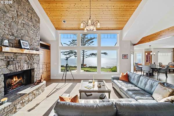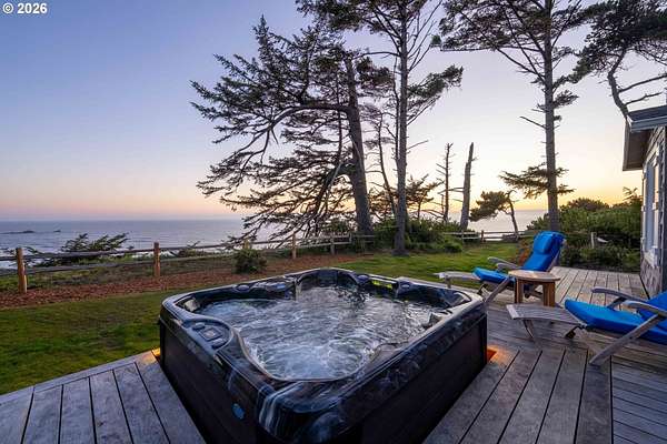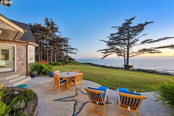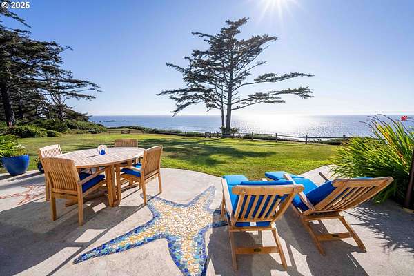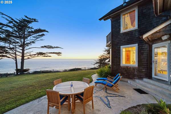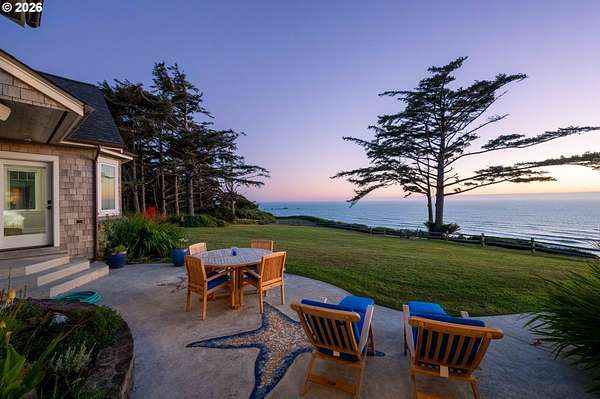 The iconic "Sea Cliff Estate" is now on the market. A rare OPPORTUNITY to own a private 9.6 Acre Oceanfront Bluff Home with your own gated Trail to the secluded Beach below. Enjoy PANORAMIC Ocean Views from nearly every Room, paired with TIMELESS Design, SUPERB Craftsmanship, and UNMATCHED Attention to Detail throughout. Ideally located just minutes from the world-renowned Bandon Dunes Golf Resort, this Property defines the ULTIMATE Coastal Retreat. Approx. 3,085 SF | 4 Bedrooms | 3.5 Baths | Office/Flex Room. Recent UPGRADES include newer Composition Roof, Copper Gutters, Stainless Chimney Caps, Heat Pump, 200 Amp Electrical Panel, Hot Water Recirculating Pump, White Oak Hardwood Flooring, Interior Paint & Exterior Treatment, Automatic Window Coverings, and Professional Landscaping. The detached Art Studio with Outdoor Shower sits just steps from a SPA-LIKE New Hot Tub and Deck, creating a serene coastal escape. Additional features include a 200 SF Outbuilding for Storage, New Well Pump, 2,500 Gallon Water Holding Tank, and 250 Gallon Buried Propane Tank. Three Stone Fireplaces (2 Indoors and 1 Outdoor on the Patio) enhance the COASTAL Ambiance. Fall asleep to the SOUND of Crashing Waves and wake to JAW-DROPPING Views in every Direction. A true ONE-OF-A-KIND Pacific Northwest Legacy Property with Recent Zone Change. MUST-SEE Video/Virtual Tour Link!!