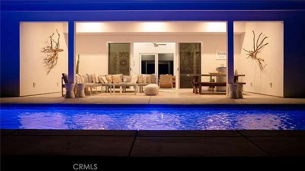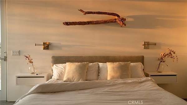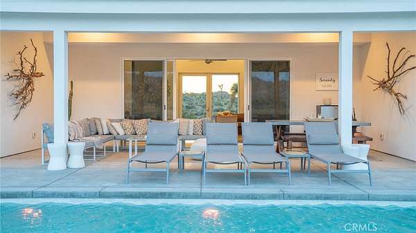 Set against the stunning backdrop of Joshua Tree National Park, this fully furnished 3-bedroom, 2-bath home is a rare offering in highly sought-after Monument Manor. Built in 2017 and thoughtfully designed with the modern desert dweller in mind, the home offers 1,806 square feet of contemporary living space nestled among rolling hills and lush, natural landscaping. From the moment you arrive, you'll be struck by the property's serene seclusion and panoramic views, which frame the dramatic desert terrain in every direction.