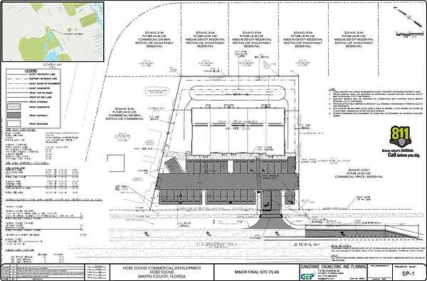 Unlock one of the most coveted opportunities in Martin County - a shovel-ready, fully permitted commercial development site located on the high-visibility US-1 corridor in Hobe Sound, Florida. This 0.92-acre parcel is offered with fully engineered and county-approved plans for a 9,650 square foot retail/flex building plus 3,122 square feet of mezzanine space, allowing for immediate construction and streamlined delivery. Ready to Build | Zero Entitlement Risk Ownership has spent nearly three years navigating the notoriously burdensome and highly detailed Martin County approval process, ensuring that every site plan, architectural element, drainage agreement, and utility connection meets or exceeds code. This rare level of entitlement certainty is nearly impossible to replicate in today's regulatory environment, making this parcel a true plug-and-play opportunity for an end user, investor, or developer. Strategic Location | Coastal Corridor Exposure Positioned directly on US Highway 1, the site is surrounded by a mix of luxury residential enclaves, service-based businesses, and national retailers all within a thriving growth corridor that connects Jupiter to Stuart. The property lies just steps from the Medalist Golf Club, Jupiter Island, and nearby upscale communities, capturing both local and commuter traffic with over 20,000 vehicles per day of visibility. Approved Design Highlights " 5 Tenant Bays (each +/-1,900-1,978 SF) with private mezzanines " +/-12,772 SF Total Approved Space " Fire-rated construction, impact storefronts, screened RTUs " Full compliance with Martin County's architectural and transparency standards " On-site parking, ADA-compliant circulation, off-site drainage agreements " Delivered with complete architectural, civil, and structural construction plans Ideal for Service-Oriented or Flex Users Perfectly suited for service-based retail, a showroom with storage, professional offices, or light trades. The flexible interior layouts and mezzanine-level expansion capacity provide strong usability across a range of commercial tenants. ; Investment Highlights " Rare Martin County Permitted Site - No delays, no guessing " High Barriers to Entry - Limited new construction pipeline due to complex entitlement rules " Flexible Zoning (R-3A) - Supports a variety of commercial and professional uses " Turnkey Development - All plans, approvals, and reports included " Premier Coastal Demographics - Affluent and underserved trade area ; Don't miss this unique chance to break ground immediately in a supply-constrained market. Whether you're an owner-user, investor, or developer seeking a high-visibility asset with major upside, this Hobe Sound parcel delivers certainty, speed, and long-term value.