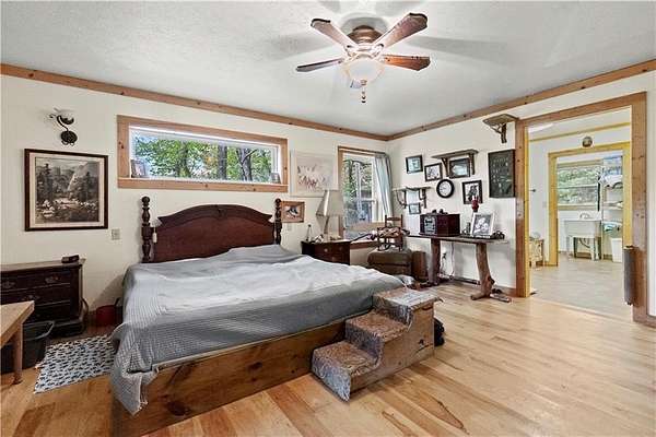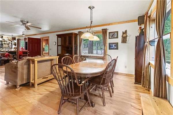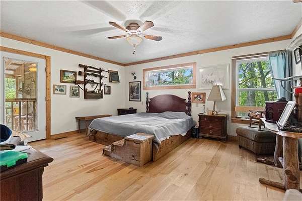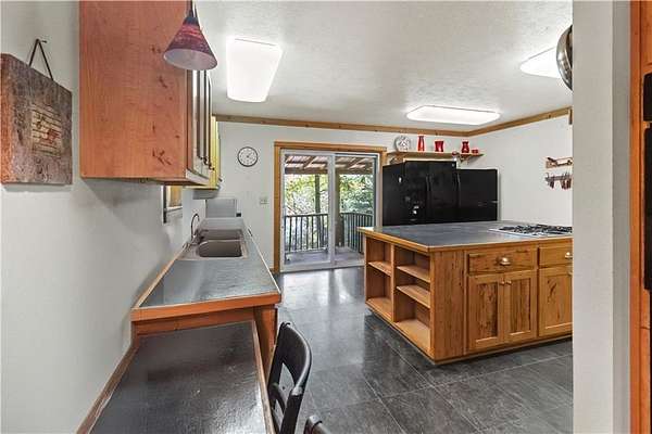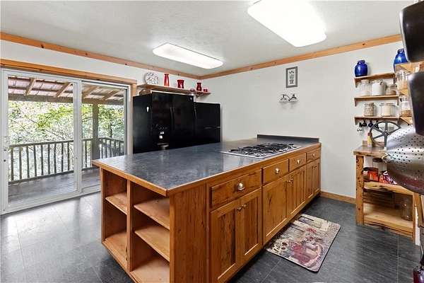 Inside, the spacious layout includes a large kitchen with hickory cabinets, an oversized island with propane cooktop, & a walk-in pantry. The cabin is fully insulated, equipped with propane backup heat & a propane light in the kitchen for off-grid peace of mind.