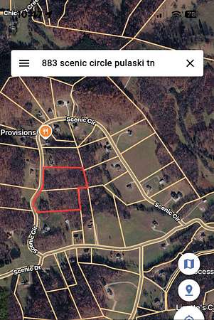 From downtown Pulaski, head west on W Madison St. Turn right onto W College St.Turn left onto TN-11 S/TN-166 S (S 7th St) and continue for approximately 4.5 miles. Turn right onto Scenic Dr, then right onto Scenic Cir. Property will be on the left.