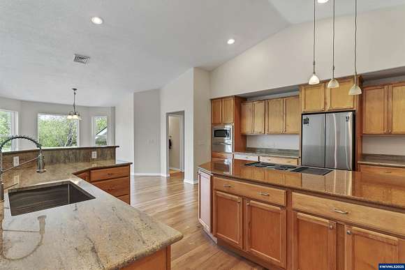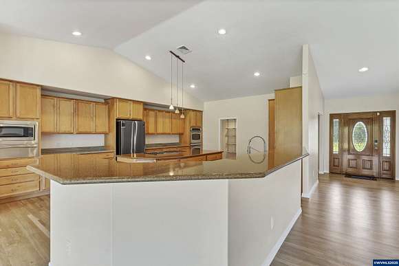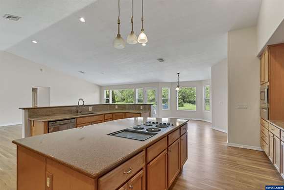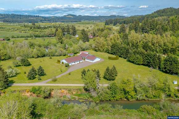 Sprawling single-level home built 2007 on 5.6 flat acres with river frontage in Grand Ronde. Offers 2,937 sq ft of open floor plan living with vaulted ceilings, 3 bedrooms and 2.5 baths. Kitchen features double island, walk-in pantry, stainless appliances including 6-burner cooktop and double ovens. Oversized 3-bay garage and attached 40x40 shop with 14' RV door. Covered front porch and back patio frame the grounds. Central to Salem, McMinnville and the coast. Enjoy peaceful country living along the South Yamhill River in this beautifully maintained single-level home on 5.6 acres. Built in 2007, this 2,937 sq ft residence features vaulted ceilings, an open-concept great room, and abundant natural light. The spacious kitchen offers dual islands, quartz counters, stainless steel appliances, double ovens, a 6-burner gas cooktop, and a large walk-in pantry--ideal for everyday cooking or entertaining.The primary suite includes a walk-in closet, double vanity, soaking tub, and tiled shower. Two additional bedrooms and a large den provide flexible space for work or guests. Central air conditioning and an efficient heat pump ensure year-round comfort.Outside, enjoy expansive grounds bordered by trees and river frontage, offering privacy and natural beauty. The oversized 3-car garage provides direct access to a 40 x 40 insulated shop with a 14-foot RV door--perfect for vehicles, tools, and hobby space. A covered front porch and back patio create inviting areas for outdoor relaxation and gatherings.Located minutes from Spirit Mountain Casino, 30 minutes to McMinnville, and under an hour to the Oregon Coast, this property combines rural serenity with convenient access to surrounding amenities.?? Nearby Amenities (approx. distances)Spirit Mountain Casino - 2.1 miGrand Ronde Market - 1.6 miTillamook State Forest - 11 miMcMinnville (shopping & dining) - 26 miLincoln City (Oregon Coast) - 34 miSalem - 42 miWillamina Elementary & Middle Schools - 4 mi