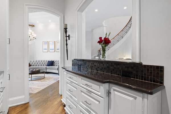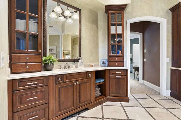 - Cathedral Ceiling(s), Ceiling Fan(s), Chandelier, Coffered Ceiling(s), Crown Molding, Double Closets, Double Vanity, En Suite, Entrance Foyer, Granite Counters, High Ceilings, High Speed Internet, Kitchen Island, Natural Woodwork, Open Floorplan, Pantry, Primary Downstairs, Recessed Lighting, Separate Dining Room, Separate Shower, Sitting Area, Soaking Tub, Sound System, Split Bedrooms, Tray Ceiling(s), Tub/Shower Combo, Vaulted Ceiling(s), Walk-In Closet(s), Wet Bar, Whirlpool Tub, Wired For Sound