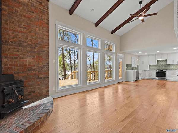 Escape to this beautifully renovated waterfront home on Elk River! Nestled on 2.63 ac w/year-round water, this move-in-ready gem is ideal for boating enthusiasts & those who love to entertain. Inviting living room w/a wood-burning stove & breathtaking panoramic views of the river. Gourmet kitchen featuring crisp white cabinets w/elegant gold accents, stylish subway tile backsplash, & spacious farmhouse sink perfect for preparing meals with a view. Luxurious primary suite with his/hers closets & a glamorous master bath complete with a large tiled shower & deep soaking tub. Expansive deck overlooking the river. 2-Slip boathouse w/electric lifts for effortless boat storage or water access.