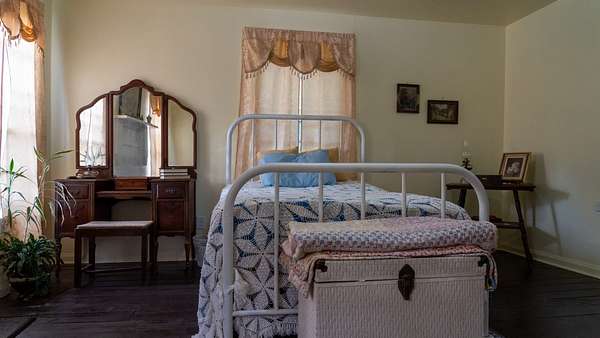 The main residence features 2 bedrooms and 1 bath, showcasing timeless craftsmanship and period details thoughtfully preserved through restoration. An adjacent 1-bedroom, 1-bath living quarters offers additional space for guests, extended family, or potential rental income.