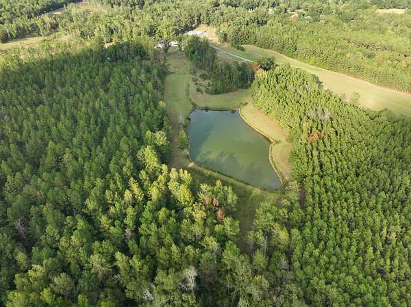 Outdoors, you'll find everything needed for a self-sufficient lifestyle: a storage shed, barn, and several acres of open pasture surrounding a beautiful 2-acre pond -- perfect for livestock, fishing, or quiet reflection. The land also includes two stands of pine plantation and a picturesque hardwood draw, providing both beauty and income potential.