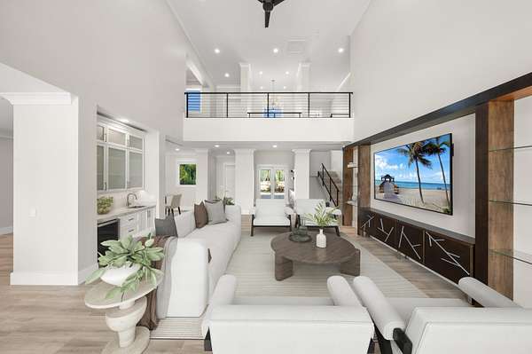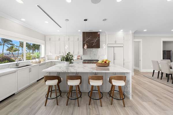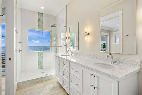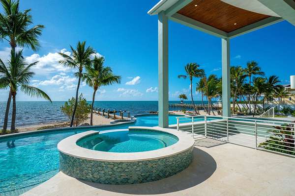 'Tranquility Haven' features the newest construction in Islamorada... completed January 2025! As you enter the gated and fenced sanctuary a long winding driveway leads up to an elevated entrance and convenient 1st floor living access. The 6 bedrooms and 9 bathrooms provide the epitome of coastal living with uninterrupted views of the turquoise waters on the Atlantic Ocean, with serene sunrises, and the gentle symphony of waves as your daily backdrop. Nestled on 210' of private sandy beach, this 2.04ac +/- serene oasis invites you to indulge in 7,738 sf of air-conditioned elegance and 1,800 sf of covered outdoor living designed for relaxation and entertaining. At its heart, a stunning 65' blue lagoon pool with swim-up bar stools, propane fire pit and spacious lounging patio promises unforgettable moments with family and friends.Inside, every detail reflects the designers' mastery, from the chef's kitchen with SubZero, Thermador, and Wolf appliances to the grand living spaces that blend sophistication with comfort. The residence boasts 2 master suites that include double bathrooms and closets! A luxurious feature of the 1st floor master suite is a unique orchid garden and immediate access to the spa and pool patio. The 2nd floor master suite ensures more privacy and the ultimate sunrise horizon view! Much more is revealed as you walk from room to room - a flex room provides for possibilities of fitness, office or guests. A family room designed with home theater technology, a 2 car garage together with a beach-access garage and professionally landscaped grounds is complete with a tropical fruit orchard! Begin each day with golden sunrises and end with starlit skies, all within the embrace of an ocean breeze. Encounter warm Winter days and cool, tranquil Summer nights.