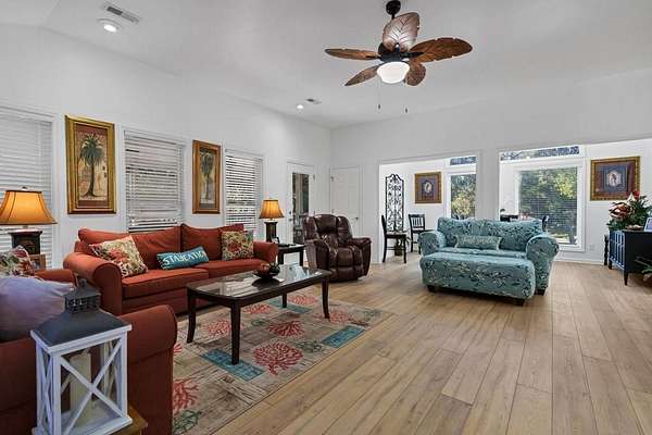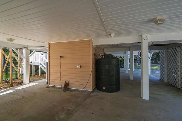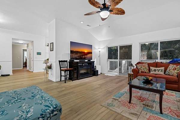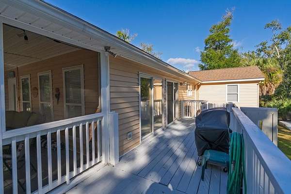 Island living in this desirable home in The Neck w/ 3BR/2BA on 1.6ac. Close to the beach & boat landing! Many updates: Deep well, whole house R/O, tankless hot H2O heater, TRANE HVAC, wheelchair accessible lift. Leaf Guard gutter sys, quartz counter tops, & a whole house generator so life continues even when the power doesn't! Spacious, fenced back yard w/ shed/workshop. Enter the open but separate L/D/K. The primary BR w/ensuite bath & 2 guest rooms w/ shared bath are on the left. Relax on the screened side porch w/ access to the back deck & cargo lift. There's h/c o/s shower, too. 3 parking bays under house, w/ storage on ground level. Easy care vinyl exterior, LVP floors throughout. Deer, birds & wildlife abound. Rocked driveway. Unfurnished, Kitchen appliances & washer/dryer convey.
