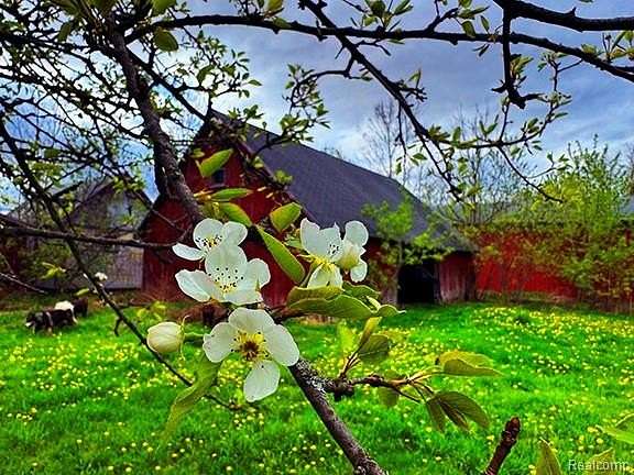 Extraordinary 51 acre fully organic farm, maintained with a passion for sustainability and self sufficiency. Tucked away in a private scenic setting this property blends modern comfort with responsible stewardship of the land. Every acre of this farm has been carefully nurtured using strict organic practices no chemicals no synthetic fertilizers just natural soil health and regenerative care. The property is fully fenced for secure boundaries and livestock protection. 40 acres of hay fields organically managed and ready for rotation or expansion. 6 acres of natural wild growth providing ideal cover for pheasants rabbits turkeys and deer. 3 wooded acres featuring silver maple trees perfect for maple syrup production. Mature wild apple and pear trees throughout 2 fenced acres surrounding the home with a gated entrance. This is a property where wildlife pollinators, and people coexist in balance. Equipped with Starlink high speed internet and outdoor cameras for peace of mind. Detached garage and large utility barn for equipment storage. Two livestock barns with water hydrants and updated wiring. A former granary converted to a office space, complete with electric AC and water plus a workshop and chicken coop.