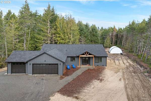 Private, New, Stunning. These are all the words that describe this newly built home that sits on over 6 acres of beautiful trees and dunes in the extremely private gated community of Heceta Dunes. Walk or drive up to your own personal Sand Dune that overlooks the stunning coastal forest just a short distance from the Oregon Coast. This new construction offers an open and bright living concept with vaulted ceilings, luxury plank flooring, black leathered granite countertops, exceptional stainless steel GE "cafe" appliances in your very own Chef's kitchen. When it comes to the kitchen, let's not forget the farm-style sink, double oven plus range hood, and a large pantry to keep your supplies. The primary suite has exterior access, dual vanity sinks, soaking tub, walk-in closet, and electric blinds. Home comes with a laundry room with plenty of built-in shelves and a 3 car garage. RV hook-up is ready to go with a 400-amp panel. There is a permit on file for a 40x40 shop with electricity for your projects, hobbies, or just another fun spot to relax. Home is close to everything that makes Florence great. You want privacy and accessibility? Then, this home might just be for you.