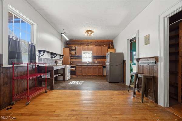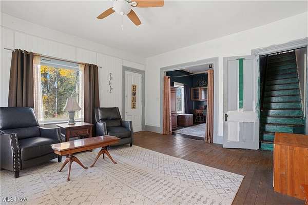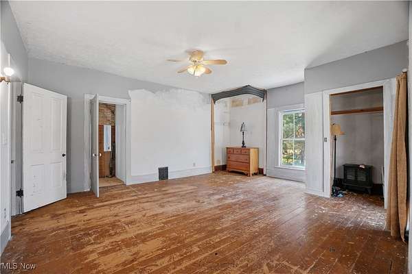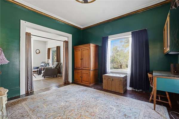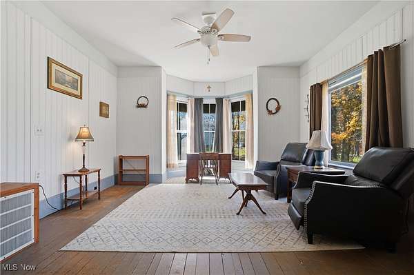Historic Homestead on 5 Acres - A Nature Lover's Dream! A Rare Blend of History, Nature, and Homestead Living | 3-4 bedrooms | 2,412 sq. ft. | Step back in time into a lifestyle of peace, privacy, and possibility with this charming 3-4 bedroom farmhouse built in 1877. Nestled on five tranquil acres of countryside and just steps from the historic New Lyme Institute (later the Deming School), the house was designed by architect RL Forman-who not only lived in the home but served as the Institute's professor of architecture. This unique property blends historic significance with natural beauty and timeless character, while offering the perfect setting for homesteaders, hobby farmers, nature lovers, or anyone seeking a peaceful rural retreat. Detached two car garage with extra room for storage and an upstairs bonus room to boot! Brimming with potential, this grand residence features original hardwood floors, classic moldings, and soaring 10-foot ceilings. A true blank canvas, it offers the perfect opportunity to infuse your personal style or restore it to its timeless elegance. Bring your vision-and your tool belt-and make this beauty shine once again. Home Highlights: Charming 2,412 sq. ft. of inviting, flexible living space with cozy farmhouse charm throughout, offering spacious living & endless possibilities. Ample homestead-style kitchen with pantry-ideal for canning, baking, and family gatherings, with plenty of room for a harvest table. Oversized Living Room with original bay window-perfect for a cozy reading chair or settee. Large Dining Room-great for cozy meals with family and friends. Expansive Master Bedroom-spacious enough for a king-size bed plus sitting area. 3-4 Bedrooms including a possible first-floor bedroom or perhaps a home office, music room, or library. Additional flexible first-floor room-great for homeschooling, sewing, or crafting. Warm farmhouse character throughout the home. Mowed trails, two ponds and lots of area for gardening