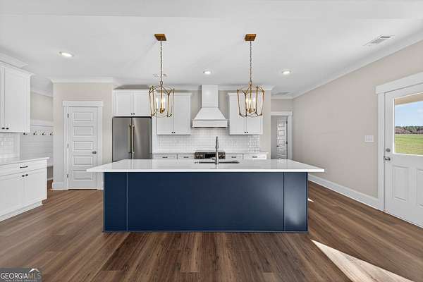 Set on an impressive 9.56 acres with a pond and no HOA, this exceptional home offers peaceful country living with breathtaking sunset views and a truly polished, like new presence. The open concept kitchen and living area is designed for elevated everyday living and entertaining, featuring upgraded THOR appliances, custom cabinetry, an expansive center island, white quartz countertops, and a striking combination of black and gold designer lighting that adds warmth and sophistication throughout the main living spaces. The great room is anchored by a statement fireplace, while the thoughtfully designed layout includes a luxurious primary suite, formal dining room, separate laundry room, and beautifully appointed secondary bedrooms. High end finishes continue throughout with Dallas White granite in all bathrooms, a spa inspired primary bath, durable hardieboard siding, and welcoming covered front and back porches that complete this remarkable property.