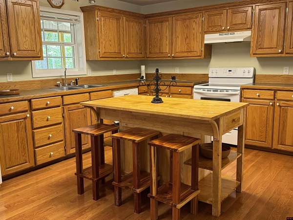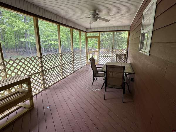 Enjoy breathtaking, year-round views of Bull Shoals Lake from this beautifully updated home, nestled on 5 acres m/l with direct access to the lake just down the road. The property borders the government strip, offering added privacy and serenity. Inside, you'll find two generous suites, each with its own full bath and large closets, plus an oversized laundry room with a convenient 1/2 bath and abundant storage. The spacious country-style kitchen features plenty of cabinetry, ideal for home cooking. Relax on the front porch with stunning lake views, or unwind in the screened-in back porch, perfect for outdoor dining. Recent upgrades include a new metal roof, back porch, and front steps. Additional features include a storm shelter, two sheds, and hardwood floors throughout, with ceramic tile in the bathrooms. This fully furnished home offers 1509 SQ FT of living space and is priced at $375,000--an exceptional opportunity for lakeside living!