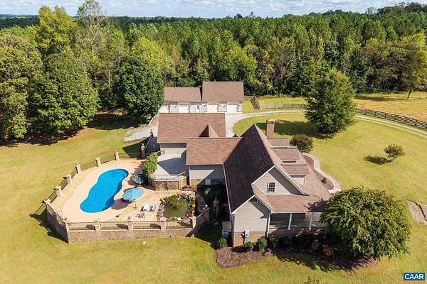 Set on 10 tranquil acres along White Oak Mountain Ridge, this refined country home showcases exceptional craftsmanship and warmth throughout. Custom woodwork, coffered ceilings, a mahogany and walnut inlay dining floor and solid poplar wainscoting highlight the home's attention to detail. The light-filled breezeway, finished in rainforest marble with hand-glazed accents and trim, connects the main living areas with effortless elegance. The kitchen features custom solid mahogany and walnut cabinetry, granite countertops, Sub-Zero refrigerator, Wolf range, Miele dishwasher, and solid wood floors, while hickory floors flow through both bedrooms. The lower level includes a wood-paneled ceiling, granite bar, and a wine cellar built in knotty alder with a solid wood door antiqued to look like a castle door--perfect for entertaining. Outdoor living is equally inviting, with wrought-iron accents, a saltwater pool with brand new system, koi pond, and mature walnut, crepe myrtle, and pin oak trees framing the property. A separate four-car garage complements the attached three-car, completing this beautifully designed retreat surrounded by nature. Additional Acreage Available!
