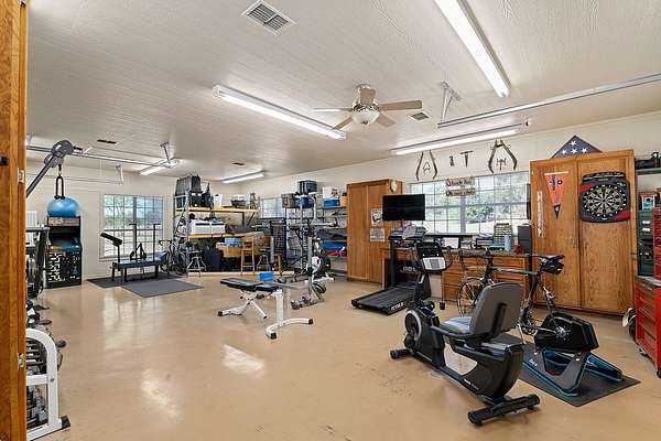 You will have plenty of room for storage in an almost 1,000 sq.ft. Barndo complete with central air and heat, roll up door and side door leading to a covered area with more room for storage and a sink. It's plenty of room for a workshop, game room or workout space. Next door is a one car garage with more storage.