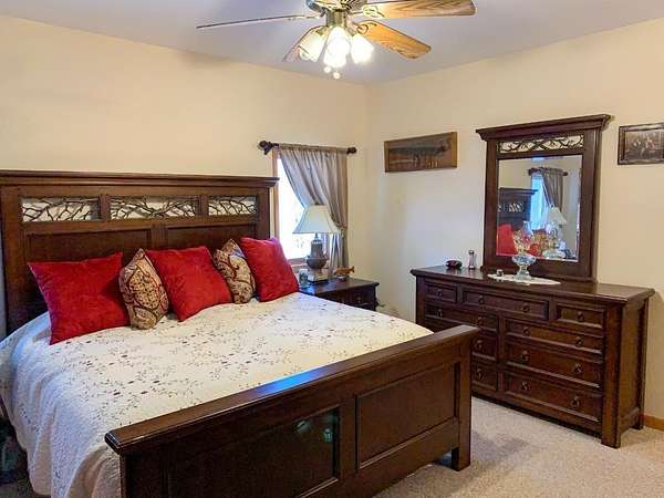 - Bath In Primary Bedroom, Cathedral Ceilings, Ceiling Fans, High Ceilings, Main Level Primary, Vaulted Ceilings, Walk In Closets