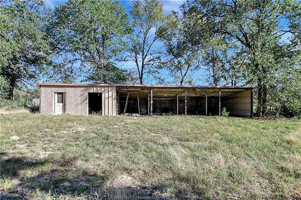 Welcome to your peaceful country retreat! This beautiful 7.67-acre property offers a serene setting with a charming 3-bedroom, 2-bath all-electric home surrounded by mature trees and nature's beauty. Inside, you'll find a warm and inviting living space featuring a cozy wood-burning fireplace, tile and carpet flooring, and abundant storage throughout. The kitchen and living areas provide a comfortable flow for daily living or entertaining. The property includes a 4-stall pole barn with a tack room equipped with water and electricity, a 9x11 Morgan building, a small covered carport, and a spacious 2-car garage. Enjoy the tranquil pond stocked with bluegill, bass, and koi fish-nice for quiet afternoons outdoors. The back of the property is heavily wooded, offering privacy and room for expansion- for a future house or larger barn. Updates include new windows and gutters (2009), new shingles (2011), insulated attic (approx. 3 years ago), insulated garage door (2021), and a new AC with heat pump installed July 2025 (still under warranty). The seller has recently underbrushed and cleared the front of the property, opening up views of the home and the picturesque winding driveway. Located in a quiet area, this property offers peaceful country living just minutes from Bryan and Hearne-the blend of comfort, charm, and convenience.
