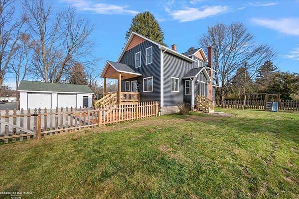Restored Farmhouse on 11 Acres - Modern Comfort Meets Country Living. Welcome to your beautifully restored farmhouse situated on 11 peaceful acres, offering the perfect blend of charm, privacy, and modern updates. This home has been fully renovated from top to bottom, featuring new windows, roof, siding, plumbing, electrical, doors, trim, and a completely updated kitchen and bathroom--all designed to provide worry-free living for years to come. Step outside and enjoy everything this expansive property has to offer. A 2.5-car garage with epoxy floors provides plenty of space for vehicles, storage, or hobbies. Two large barns with concrete floors offer endless possibilities for workshops, equipment, or recreational use. You'll also find a chicken coop, plus a hunting blind tucked away on the property for outdoor enthusiasts. Property also offers a wood burning system and waterproofed basement with drain tiles.
