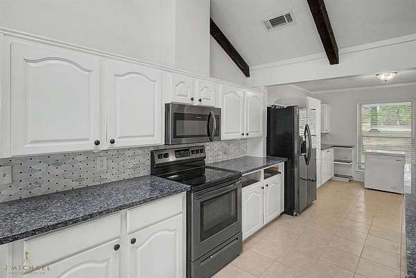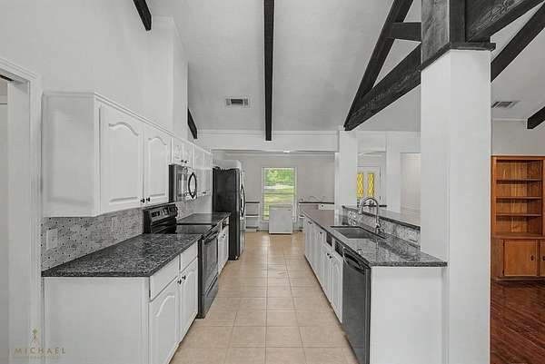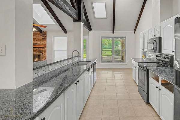 ASSUMABLE LOAN – 2.5% INTEREST RATE This beautifully updated family home sits on 3.65 acres, offering the perfect combination of peaceful country living with convenient access to the city and I-20. Inside, you’ll find a renovated interior 2025 featuring vaulted ceilings, skylights that bring in abundant natural light, and a cozy living room with built-in shelving and a stunning brick fireplace. The eat-in kitchen provides plenty of storage, while the private primary suite is tucked away for added comfort, complemented by a spacious utility room with sink and pantry. Outside, the property is just as impressive with a 30x30 enclosed workshop complete with electricity, custom cabinets, and an electric heater, plus an RV cover with hook-ups. A paved driveway leads to the home, and the large back patio, fenced side yard, mature shade trees, and pear trees create the perfect outdoor setting. With new windows installed in 2024 and located in a low-traffic area, this property is a rare find you don’t want to miss.