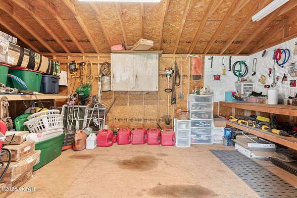 Welcome to this beautiful one-owner country home situated on 3.1 fully fenced acres. This spacious 4-bedroom, 3-bath home offers comfortable living with an open-concept design and quality features throughout. The large kitchen boasts granite countertops and ample cabinet space, perfect for gatherings and everyday living. The expansive master suite includes a luxurious bathroom with a walk-in shower and relaxing jetted tub. With two living areas and generously sized bedrooms, this home has all the space you need. The downstairs bathroom doubles as a storm shelter, providing peace of mind during severe weather. Outside, you'll find a 30x40 shop with a 20x40 lean-to for extra parking or storage, a 16x18 storage shed with lean-tos on each side, and a 20x36 storage building-ideal for equipment or hobbies. Additional highlights include a large attached two-car garage, whole-home generator, and a wired security system. Enjoy the quiet country setting with modern conveniences and plenty of space to make it your own.