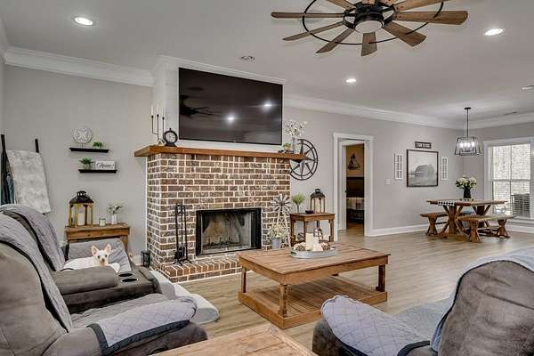 Welcome to your private slice of paradise in the highly sought-after equestrian community of Fox Hollow. Situated on 7.68 picturesque acres, this gorgeous custom-built home -only 4 years old- offers the perfect blend of luxury, space, and country living. Boasting 2,385 square feet, this thoughtfully designed home features 4 spacious bedrooms and 3 full bathrooms, with high-end finishes throughout. The kitchen and bathrooms are beautifully appointed with granite countertops, soft-close cabinets and drawers, and timeless design details. Above-code insulation, an HVAC system under warranty, and modern construction provide peace of mind and energy efficiency. Enjoy comfort and convenience with remote-controlled ceiling fans, recessed lighting, and a surround sound system throughout the home - including the back patio, making it ideal for entertaining. Step outside to relax by the outdoor fireplace and take in the serene views of your expansive property. The generously sized primary bedroom is a true retreat, complete with a huge ensuite bathroom and an enormous walk-in closet. Additional highlights include a full-size pantry, an ample laundry room, and a 2-car garage. A standout feature of the property is the 40 x 40 detached carport with power already in place -easily convertible into a workshop, barn, or horse stable to suit your needs. Fox Hollow offers exceptional equestrian amenities, including miles of riding trails and an arena with jumps & obstacles. The home is also just a short walk to Boyd Pond Park, where you'll find walking trails, a playground, fishing pond, grilling areas, and courts & fields for basketball, baseball, football, soccer, and disc golf. This is more than a home- it's a lifestyle. Don't miss your opportunity to own this stunning property.