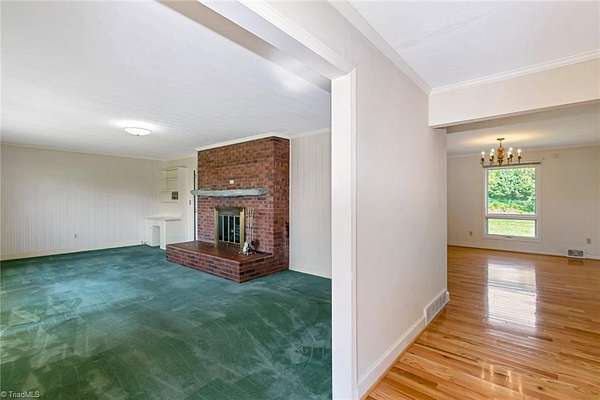 Est $2,357/moCentrally located brick ranch with endless potential! This well-maintained 3-bedroom, 3-full bath home features hardwood floors, a spacious living room with a gas log fireplace, and a formal dining room. The large kitchen offers plenty of storage and prep space, perfect for entertaining. The Primary Suite includes a private ensuite bath. The full unfinished basement provides excellent space for future expansion or storage. Attached 2-car garage plus a detached 4-car garage--ideal for car enthusiasts, hobbies, or extra storage. Convenient to shopping and HWY 421, this home has both space and potential to make it your own!