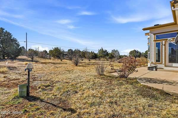 Come explore this spacious 3 bed, 2 bath, Silvercrest triple-wide, where 2,310 sq. ft. of comfortable living meets a wealth of outdoor possibilities. Featuring dual living areas, engineered wood flooring, a formal dining room, and a breakfast nook, the home's layout is designed for both relaxation and functionality. A soapstone woodstove offers efficient, cozy warmth. The enclosed Arizona Room provides a protected connection between the home and the 2-car garage. The exterior is a gardener's retreat, featuring established fruit trees, bamboo, flower plants, rose bushes, along with native trees. Extensive outbuildings include a detached studio (formerly an art room), a dedicated well house, storage buildings, canopy shelters, and two Conex units. Set up for self-sufficient living this property features a private well, a second power pole at the east end, and a secondary, unused septic system also on the east end of the property. These amenities offer significant infrastructure for future projects (buyer to verify all zoning/permit requirements). Fruit trees include apple, apricot, jujube, cherry and asian pear. Located next to a paved road with easy access to shopping, dining, medical, and local lakes/hiking.