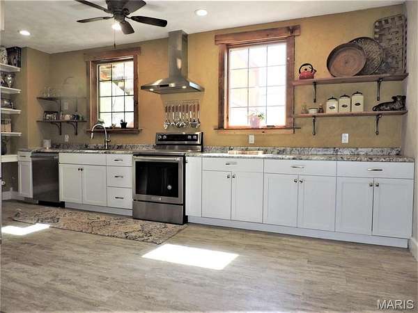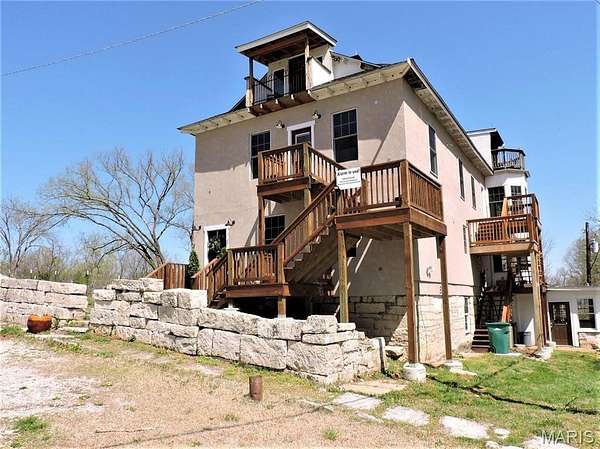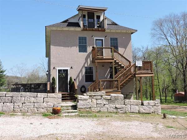 Owner will provide a 6 month warranty and carry back 10% of purchase price at 12% for 1 year. This historic pre-civil war building includes 1.6 acres along the "Big River" about 45 minutes southwest of St Louis. The building has undergone an extensive renovation over the past few years & awaits a new owner to reach it's full potential. A popular destination for a day trip, camping, fishing, boating ,swimming or spoil yourself with a private room. With 6 private bedrooms, over 3800 feet of finished space on 2 floors with a full walk out basement with rough-in service for 2 baths & 2nd kitchen,8' ceiling height.