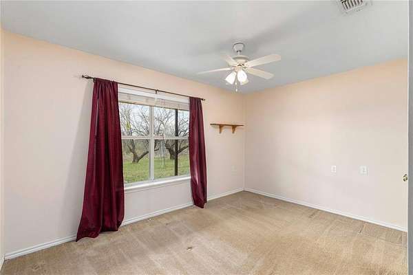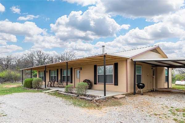 Atop a hill with breathtaking views that stretch for miles, this 3-bedroom, 2-bath ranch-style home sits on 60.85 acres of beautiful Central Texas land. The property offers privacy and security with a fully fenced perimeter and gated entrance, making it ideal for both a homestead and a recreational retreat. The home features a durable metal roof and a well-designed kitchen with pull-out drawers for easy access and organization. The propane tank is owned by the property owner, providing added convenience for future buyers. In addition to the home, the property offers excellent parking and storage options, including a two-car attached carport and a detached covered parking area large enough for two additional vehicles. Outdoor enthusiasts will appreciate the excellent hunting opportunities, two ponds, and generous tree coverage that attract wildlife & provide natural beauty throughout the property. According to the seller, the back portion of the land also contains abundant flint and fossils, offering a unique feature for those who enjoy exploring the land. Whether you’re looking for a peaceful country residence, a hunting property, or simply a place to enjoy wide-open Texas skies, this hilltop ranch offers privacy, space, and incredible panoramic views that are hard to find. CURRENT AG EXEMPTION