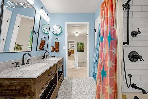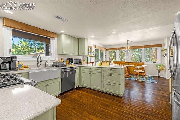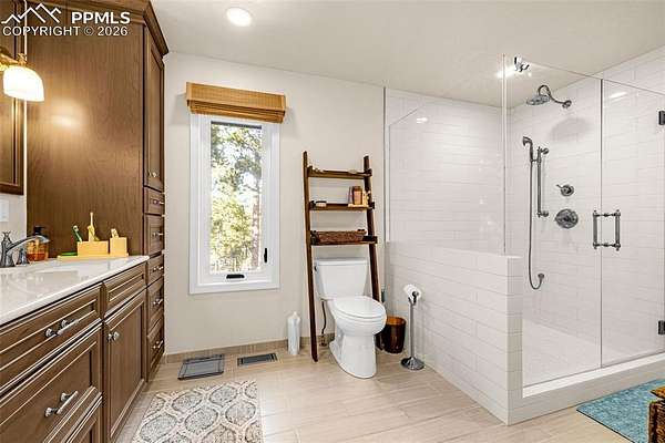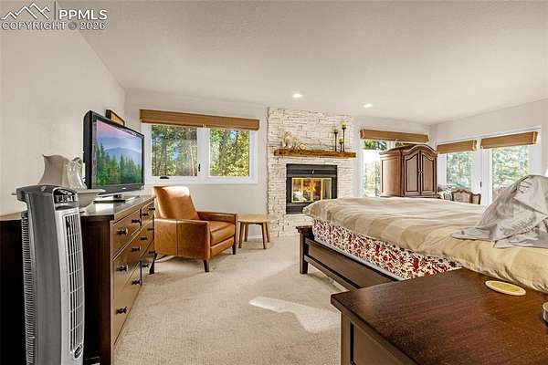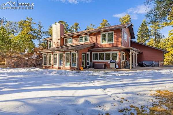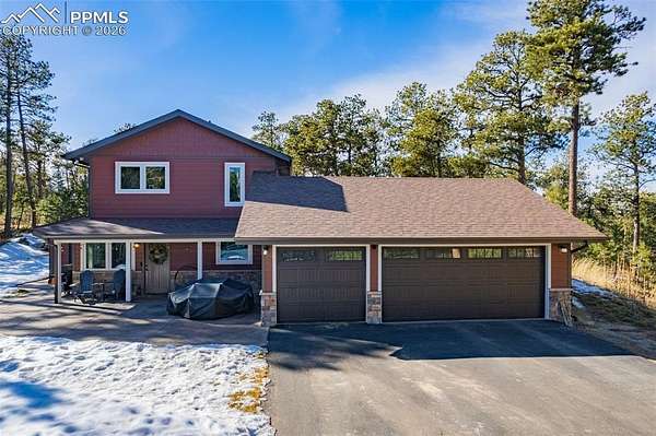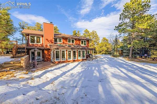 Come see this beautiful Black Forest gem before it is gone! Nestled perfectly in the trees, this gorgeous property sits on 5 acres in an idyllic neighborhood in the center of Black Forest far enough to feel like a getaway while being near everything Colorado Springs has to offer! Being completely remodeled from the outside in, you and your family will enjoy the cabin feel with modern details. As you enter the home, you'll be greeted by a spacious family room full of natural light. To the right, you'll enjoy the fully remodeled kitchen complete with stainless steel appliances, quartz countertops, new cabinets and plenty of space for the chef of the house. Continuing on, the laundry room/mudroom is large and has plenty of storage for shoes and laundry essentials. This leads to your 3 car garage ready for your vehicles and any other toys you may have. Back in the house, walking past the family room is a cozy living room featuring a fireplace great for snuggling up to on a cold Colorado day. To the left is a gorgeous sunroom perfect for dining or relaxing and enjoying the beautiful wooded lot through your newer upgraded windows. This leads outside to a gorgeous stamped concrete patio great for entertaining and enjoying nature. Further down the hallway, you'll find a large office or spare room great for getting work done while basking in the natural light. Upstairs, you'll find 2 spacious bedrooms and a beautifully remodeled full bathroom. Further down the hallways is your palatial primary bedroom, complete with a gorgeous fireplace, a walk out to your deck and en suite primary bathroom. This primary bathroom is luxurious, featuring a double vanity with extra cabinets, a fully tiled free standing shower and hardy tile floors. Make this beautiful home yours before it is gone!