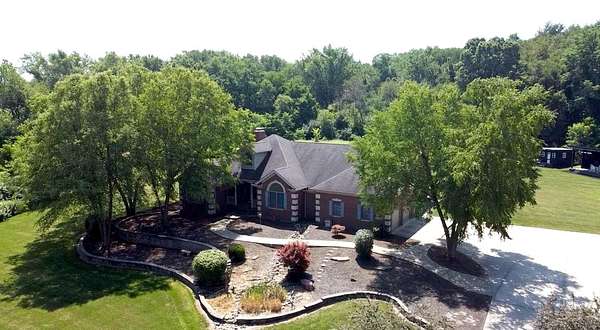 Welcome home to your own OASIS- Where luxury, comfort, and craftmanship meet on 5 breathtaking acres! This Prestigious all brick ranch home boasts over 6,000 square feet of living space and delivers the perfect balance of serenity and entertaining. This custom estate is a one-owner home and everything has been carefully thought out. The intelligent design includes 3 spacious bedrooms, 4 bathrooms, premium oak flooring, vaulted ceilings, custom OAK TRIM, and spacious closets throughout. The large primary bedroom is enhanced by an amazing private bath with glass block shower and deep soaking bath tub. Many impressive design elements are found throughout this executive level home including: huge architectural windows, a gorgeous river rock stone (wood burning) fireplace, sun room, wood-burning stove in basement and more! The centerpiece of the home is the AWESOME Chef-grade kitchen with Custom MAPLE Cabinets, beautiful SOLID granite counter tops, GIANT 2-level island, PLUS A HUGE Walk-In Pantry. The laundry facilities are conveniently on the main floor and offer gorgeous front loading equipment and a large sink. Other desirable features include: HUGE walk-in closets, a convenient wine cellar, two large workshops or additional storage rooms with tons of shelving. The MASSIVE 62 X 42 POLE BARN is insulated and heated offering 16' Ceilings, 5 overhead doors and includes a hydraulic in-floor car lift, PLUS a 14' roll-up door made for a your RV and tons of cabinet space. The Tree-lined backyard features a 2000+ SF sun deck overlooking a Cool performance stage, gazebo with HOT-TUB, kiddie play house shed, DELUXE Fire-pit, and outdoor kitchen. Additional features include: Radiant-Heat system in basement, main level, attached garage and separate system in Pole Barn. 15KW GENERAC SYSTEM, 2X6 CONSTRUCTION, 6" CONCRETE FLAT WORK and Custom Stamped Sidewalks, SECURITY CAMERA SYSTEM, ALL APPLIANCES INCLUDED. GRAVELY 60" COMMERCIAL ZERO TURN MOWER ~~ A ONE-OF-A-KIND PROPERTY ~~