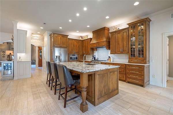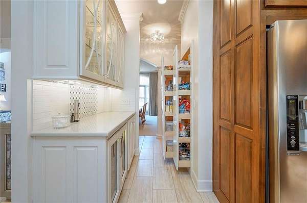 - Ceiling Fan(s), Custom Cabinets, Kitchen Island, Stained Cabinets, Walk-In Closet(s), Wet Bar