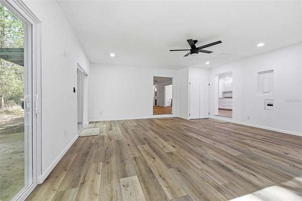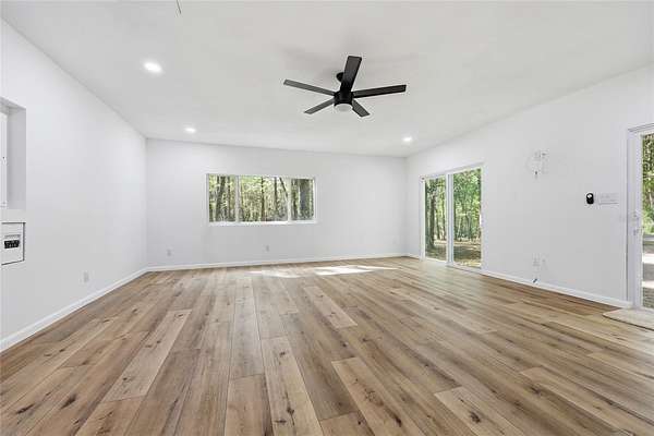 Own your own slice of Florida paradise on 6.83 acres in Micanopy, where the only neighbors in sight are the local deer and your home has been fully renovated with high-end finishes throughout 2,163 square feet of heated living space. From the moment you turn off the paved road and onto the winding gravel driveway, the curb appeal is immediate—defined by the majestic beauty of a dense canopy that provides a natural barrier from the outside world. The residence greets you with an expansive, screened-in front porch that extends along most of the home’s length, offering a quintessential space to enjoy the outdoors. Step inside to a layout that has been thoughtfully transformed, including a converted garage that now serves as a massive, light-filled living area featuring wide-plank LVP flooring, a new textured ceiling with LED lighting, and updated sliding doors. For the culinary enthusiast, the updated kitchen is a showstopper, boasting gleaming quartz countertops, new cabinetry, under-cabinet lighting, and consistent flooring that flows into the formal dining and living spaces. The interior is further highlighted by a unique primary suite, created by combining two smaller rooms into one grand, functional retreat featuring dual ceiling fans and "his and her" closets with bifold doors. This transition has evolved the home into a spacious two-bed, three-bath layout where every bathroom has been touched, including a fully updated guest bath with a walk-in tile shower and a well-maintained second bath featuring beautiful tile and a modern vanity. Modern mechanical upgrades provide ultimate peace of mind, including a new 5-ton AC unit, a whole-home generator with a propane tank, and recent roofing repairs with new plywood sheeting and fascia boards. The transition to outdoor living is seamless via a dedicated laundry and mudroom—where the washer and dryer convey—leading out to a back patio area designed for tranquility. The backyard is a vast, natural expanse featuring a French drain system to manage runoff and a substantial metal workshop building with a garage door, offering a major benefit for any hobbyist. Located in a quiet, no-HOA community on the Marion County side of Micanopy, you enjoy the benefit of lower property taxes while remaining just minutes from the "town that time forgot." Whether you are wandering through historic Micanopy’s antique shops or making the short drive to Gainesville for premier medical facilities and the University of Florida, this 6.83-acre legacy offers the ultimate balance of secluded homesteading and modern convenience. Schedule your private tour today to experience this one-of-a-kind woodland property in person before it is gone!
