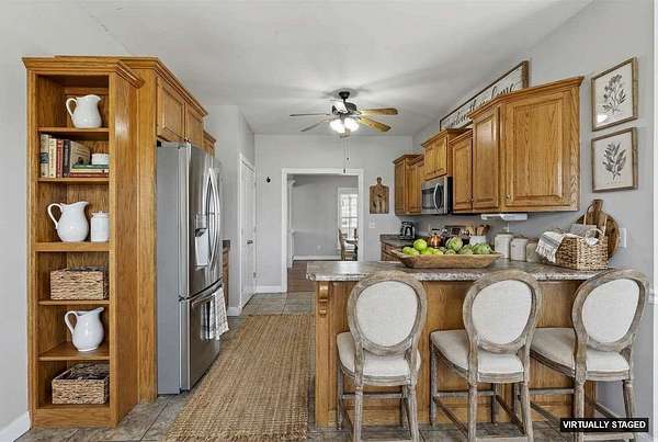 886 Megan Lane Spacious, well-appointed home offering over 3,500 sq ft of finished living space with 4 bedrooms and 3 full baths. This property features a 4-car garage, formal dining room, and a large open living room with 10’ tray ceilings that flows beautifully from the oversized foyer. The primary suite is a true retreat with tray ceilings, a walk-in closet, and a large tiled walk-in shower. The full basement is mostly finished and includes a bedroom, full bath, and a large family room with a gas fireplace. Entertain in style with a unique 12’ oak soda fountain/bar and back bar—perfect for gatherings. Outside, enjoy stamped concrete drive and sidewalks, plus a large patio complete with a hot tub and outdoor fireplace, creating the ideal space for relaxing or entertaining. So much more to see—schedule your private showing today.
