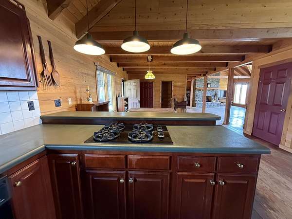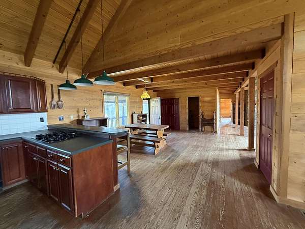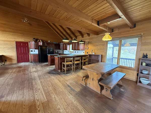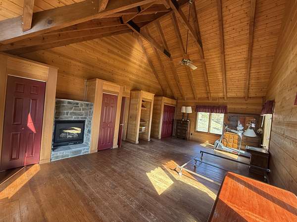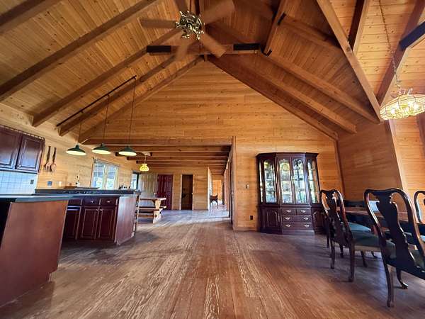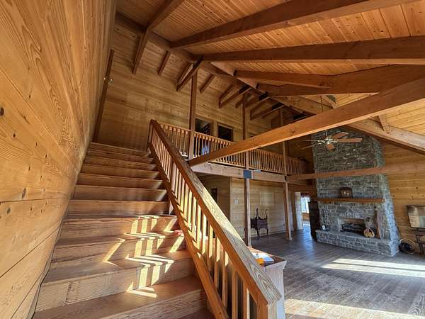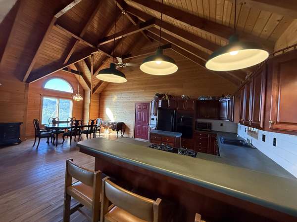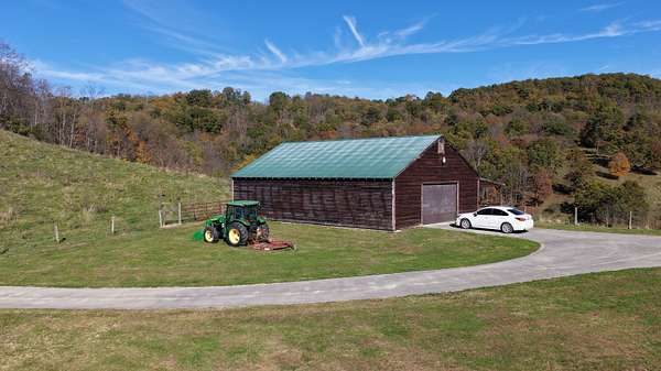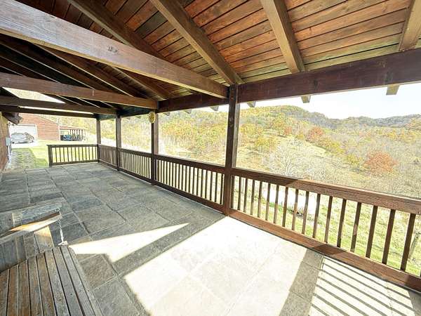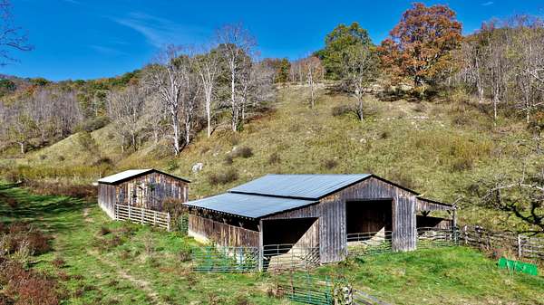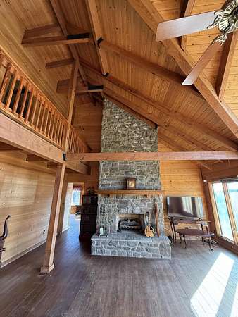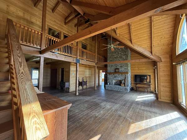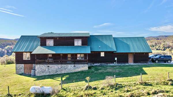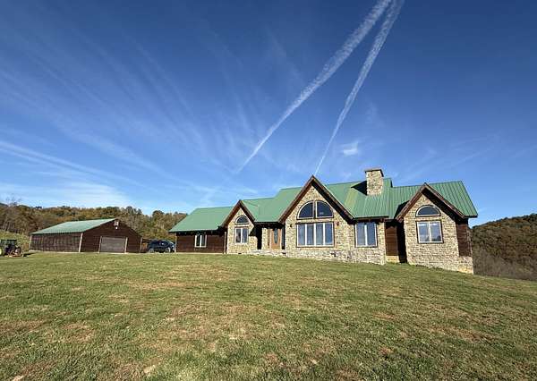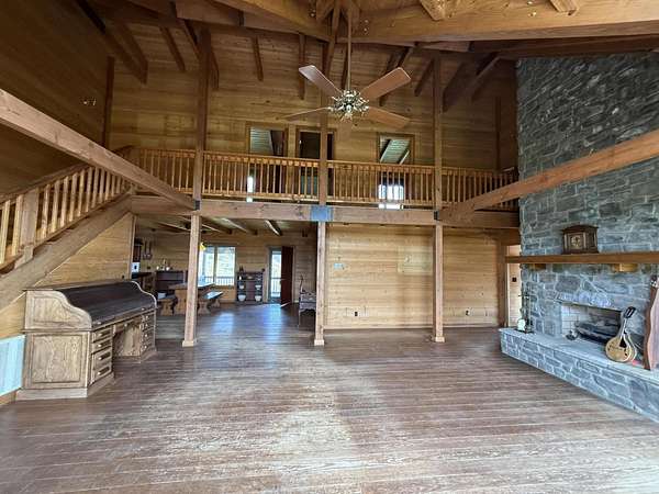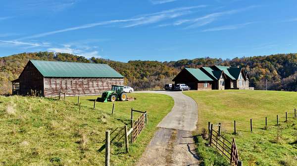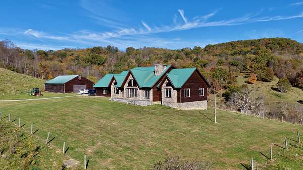 Escape the daily grind at The Vista on Trout Run where you will find yourself surrounded by nature perched atop 46 acres of pure panoramic views. Relax in the wide open-concept living/dining/kitchen areas in this rustic-contemporary home. Enjoy the stunning architectural features in wood and stone that complement the spacious rooms and easy living style. Additional details include the huge main level master suite with gas fireplace, the two story living room with floor to ceiling stone fireplace, and two second floor guest rooms and bath with balcony walkway overlooking the length of the living room. Farm details include the large detached workshop and additional barns and storage buildings.