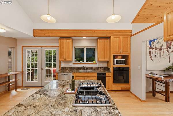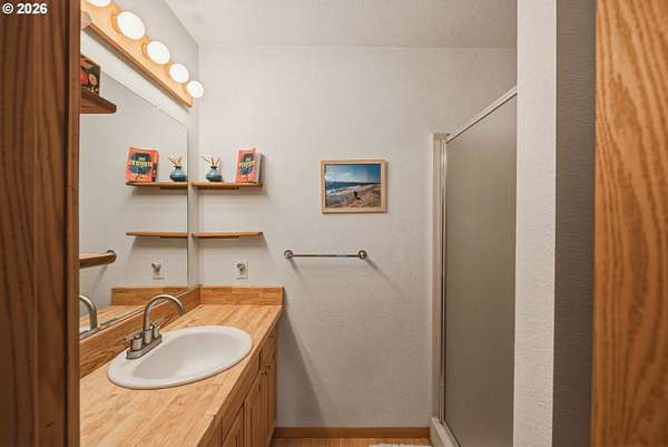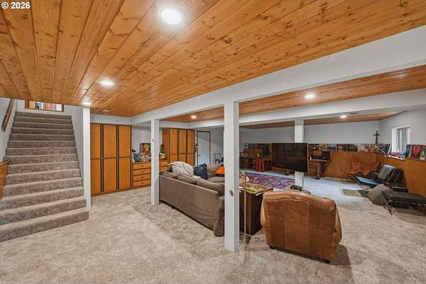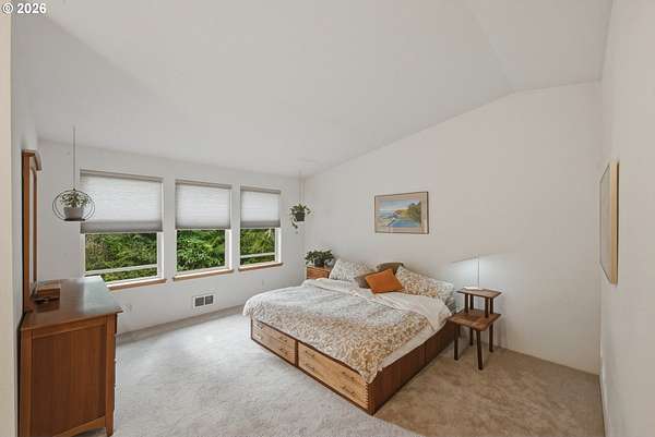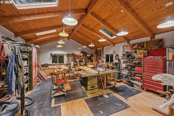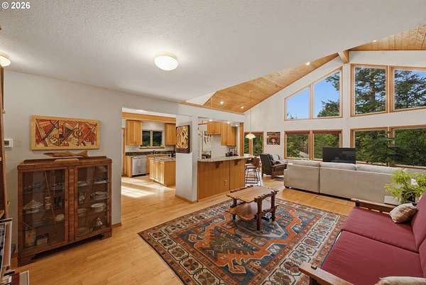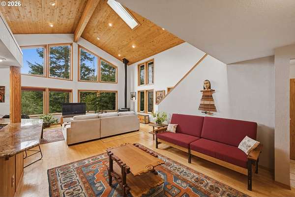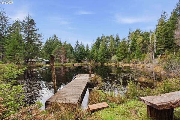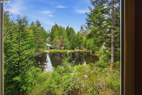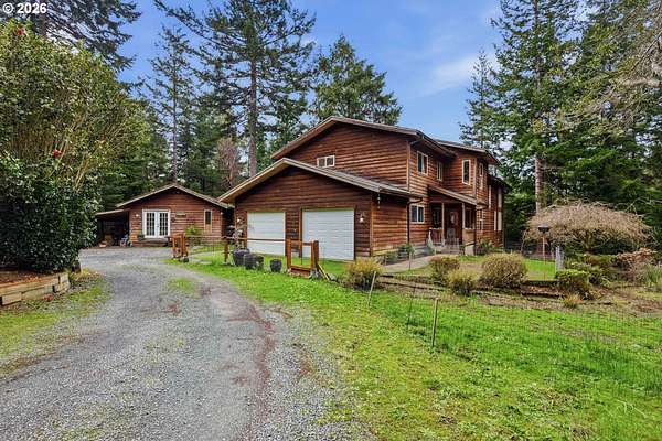 Set on 1.94 acres just minutes from Bandon's beaches, Old Town, and The Bandon Dunes world-class golf resort, this beautifully updated 3-story home offers over 3,000 sq ft of versatile living space in a peaceful coastal setting. The main living area is warm and inviting, anchored by a new Lopi woodstove (2024) and enhanced by a new living room skylight (2025) that fills the space with natural light. The kitchen features a new refrigerator and dishwasher (2024), while updated blinds throughout the bedrooms and living areas add a clean, finished look. All three bathrooms were remodeled in 2025 with new sinks, fixtures, toilets, and countertops. New carpet was installed upstairs in 2024, with additional new carpet in the walk-out basement (2025), along with fresh interior paint and updated lighting. The lower level offers flexible space ideal for guests, a home office, media room, or multi-generational living. Major improvements include a new roof (2024), reinforced deck, and HVAC service in 2026 for added peace of mind. Outside, enjoy a blend of open usable land and mature trees, providing space for gardening, entertaining, or simply relaxing right on Trout Pond. Unwind in the 6-person Artesian Spas "Plume" hot tub (installed 2024) with dedicated electrical professionally installed by Lloyd's Electric. A temporary dog fence currently encloses the yard area. A detached workshop offers excellent potential for a studio, gym, hobby space, or future guest setup. Acreage properties this close to town in Bandon with extensive updates already completed are a rare find. Call your Realtor and schedule a showing TODAY!