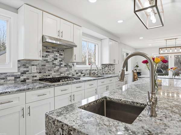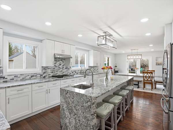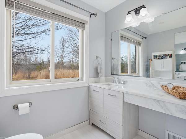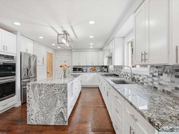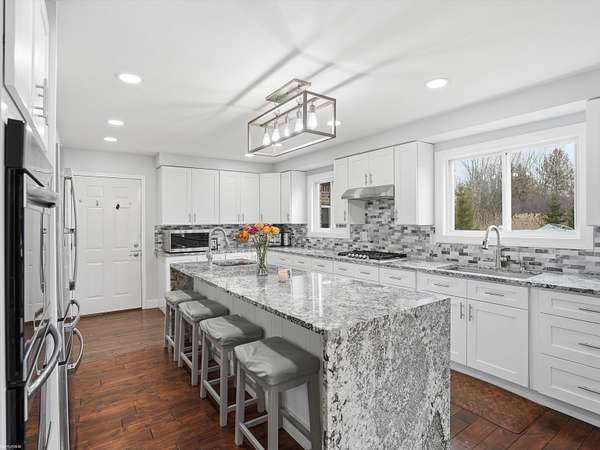 Beautifully updated brick split-level home situated on 10 private acres, set well back from the paved road for exceptional privacy. Conveniently located with easy access to I-94 just 7 miles away, while shopping centers and two medical hospitals are within 5 miles. Lake St. Clair is only 2.5 miles away an ideal location for lake lovers. This spacious home features 4 bedrooms and 3 full bathrooms, including a primary suite with a walk-in closet and private walkout access to the deck. A convenient entry-level home office makes working remotely comfortable and practical. Hardwood floors add warmth and character throughout the main living areas. The updated kitchen is designed for both everyday living and entertaining, featuring waterfall granite countertops, a matching granite dining room table, stovetop, and double oven. The dining area also offers walkout access to the deck, creating a seamless indoor-outdoor flow perfect for gatherings. The finished basement provides additional living and storage space, including a room with double closets ideal for organization, storage, or flexible use. Outside, the property is designed for outdoor living and recreation. Enjoy a large entertaining deck, volleyball court, and a private fishing pond.