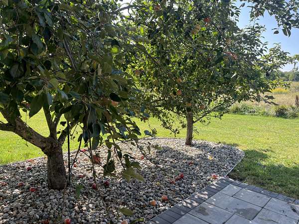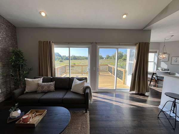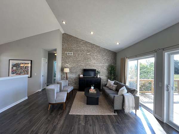 Wonderful walkout home on a beautiful acreage site with newly stained deck and fireplace built into patio. High end kitchen appliances. Various recent replacements including new furnace. Owners have moved into new home so easy quick occupancy. NOTE: This is a nice squarish parcel and there may be a split here with raised septic system.