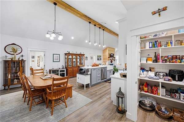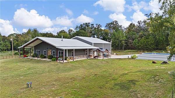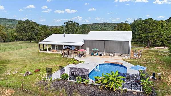 UNIQUE, RUSTIC- MEETS- INDUSTRIAL IN THIS PHENOMENAL NEWER BARNDOMINIUM! 5,600 sq ft of heated/cooled integrated living space, work place, and hobby arena. Only 3 years old, this secluded, stunning, creation sits on 40 acres more or less. Mountain views, close proximity to the national forest, mountain biking trails, and lakes. Breathtaking views, huge, covered porches on the exterior. The interior of the home portion has exquisite details in every square foot. All appliances convey. The home is approx 1900 sq. ft with the massive garage and shop hosting the remainder of 5600 sq feet. Shop has a half bath. Shop and garage have their own mini split systems. Built to withstand wind velocity of 115 mph (per seller), all windows, doors, skylights, and other covered openings were designed to withstand the specified wind loads. Every room offers high customization. The creek meanders through the north portion of this acreage.