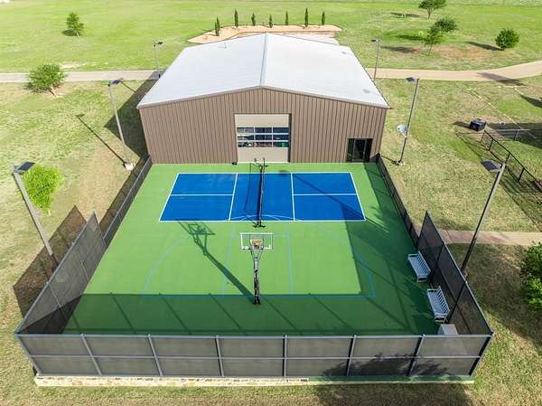 - Basketball Court, Courtyard, Dog Run, Fence, Fire Pit, Lighting, Outdoor Living Center, Private Yard, RV/Boat Parking, Rain Gutters, Sport Court, Stable/Barn, Tennis Court(s)