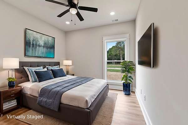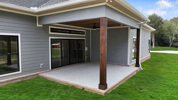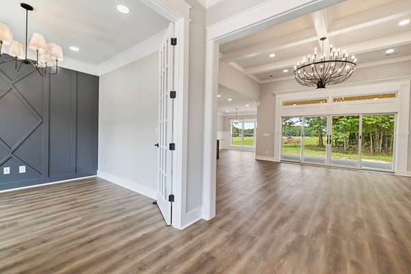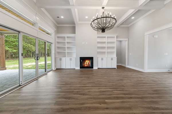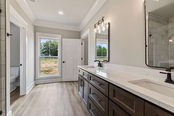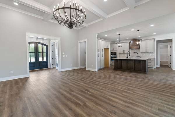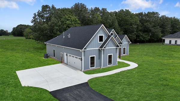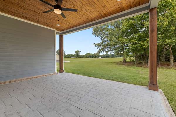 This custom built 4-bedroom, 3-bath new construction, nestled on 2.92 acres of serene, partially-wooded land, offers versatility: blending modern style and multi-functionality. Home features expert craftsmanship and attention to detail: entry foyer, 9' ceilings, spacious great room, large kitchen/dining area featuring quartz countertops, stainless appliances- provides an inviting space for food, fun, and entertaining. The LVP floors throughout the home with tile in bathrooms further ensures lasting beauty and durability. On-demand tankless hot water heater- means there is Never a COLD shower! Primary bedroom is purposefully split from other main-level bedrooms for added privacy and on-suite bath has double vanities, tile (walk-in/wheel chair accessible) shower, and large walk-in closet. The coffered ceiling in the office/study adds a touch of class and distinction. Utility Room also features its own "Doggy Shower" - Wonderfully convenient for bathing your pooch at home! Upstairs 4th bedroom and full bath offer privacy and a place to retreat from the main floor living-areas. Outside you'll find: hardie board siding and rock exterior, tongue & groove ceilings under both front/back covered porches- Stamped back-porch floor beautifully accentuates the outdoor-living space. There are too many finishes you must see to appreciate fully! All measurements are approximate and not guaranteed, if important please remeasure (Buyer & Buyer's Agent to verify all pertinent information).
