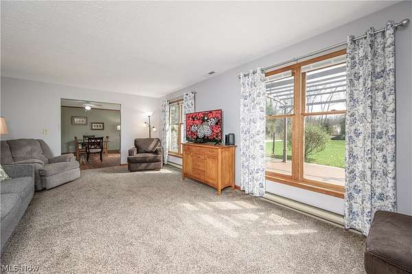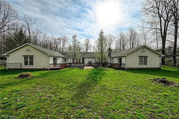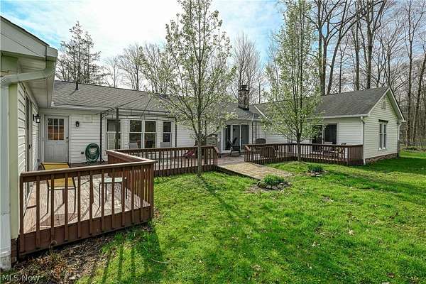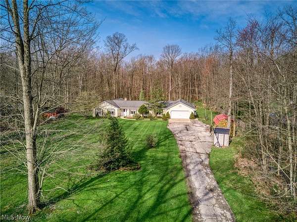 Nestled on five serene acres in Shalersville, this sprawling ranch offers over 3,500 square feet of living space designed for comfort and flexibility. The heart of the home features a seamless flow between the formal living room with large windows and the family room, where freshly painted walls create an inviting atmosphere. The spacious kitchen includes an island, abundant counter space, a wall of pantry cabinets, a bright bay window, and warm wood flooring, while the adjacent dining room showcases brand-new laminate flooring installed in 2026. With direct exterior access from the family room, the transition to the peaceful wooded backdrop is effortless. The layout is divided into two distinct wings, ideal for a variety of needs. One side offers four bedrooms and two full baths, including a massive 23' x 23' primary suite with a walk-in closet and private exterior doors to the back deck. The opposite wing features a versatile space with an additional bedroom, full bath, sitting room, and office area-perfect for an in-law suite or guest quarters-with new thermostats throughout. The temporary office wall can be removed to create a larger bonus room, offering flexibility for a home business or multi-generational living. Outside, enjoy a new front entry door (2025) and expansive front and back decks overlooking the private wooded rear of the property. Mechanical updates include a new well pump (2025), serviced whole-house generator (2025), and recently serviced furnace and primary A/C. A two-car attached garage and four storage sheds provide ample space for tools, equipment, or hobbies. This property offers the space and versatility to make it your own.