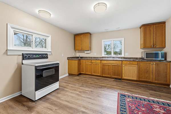 - Eat-In Kitchen, Garage Door Opener, LP Tank Rented