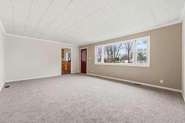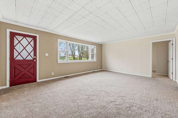 Newly renovated 3-bedroom, 2-bath country home on 2.5 acres--move-in ready and brimming with charm. Fresh paint and brand-new carpet throughout create a bright, clean interior; thoughtfully updated kitchen and baths blend modern finishes with comfortable, rural living. Spacious living areas with abundant natural light make entertaining easy; bedrooms are well-sized and baths are contemporary and functional. Step outside to your private wooded retreat with established trails winding through the property--perfect for morning walks, exploring, or wildlife watching. The parcel is peacefully bordered by open farmland, offering expansive views and a true sense of country seclusion while still being convenient to local amenities. Ideal for buyers seeking a turnkey country escape with modern comforts and outdoor privacy. Schedule a showing to experience the combination of recent renovations and serene, wooded acreage firsthand.